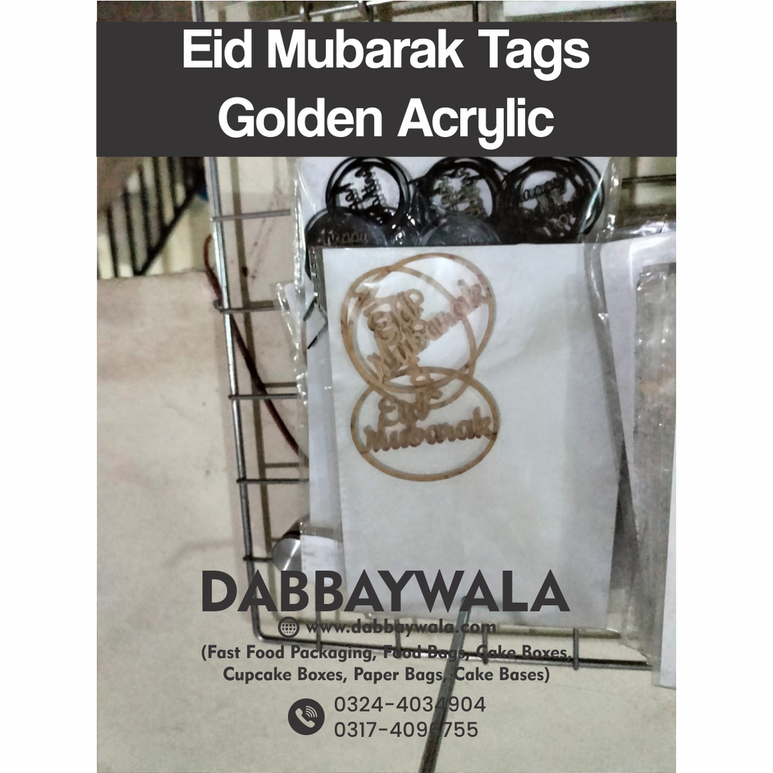 Introducing Dabbaywala's Golden Acrylic "Eid Mubarak" Tags – Elevate Your Gift Packaging with Elegance! Golden...